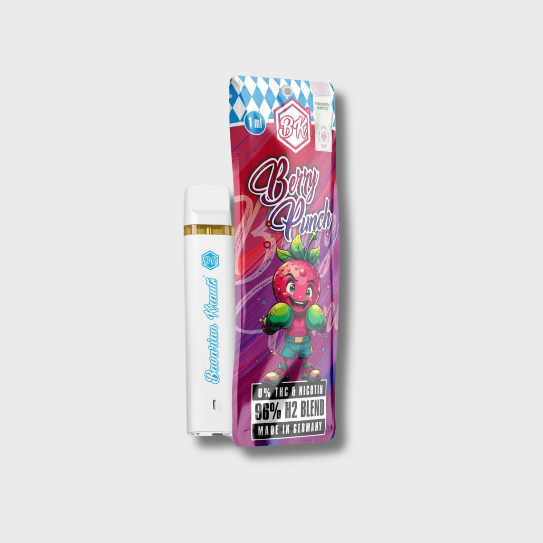Der Bavarian Krauts H2 96 Vape – Berry Krauts kombiniert höchste Reinheit mit einem unverwechselbaren Beerengeschmack. Mit 96 % H2 Blend, modernem Design und einfacher Anwendung bietet er ein Premium-Dampferlebnis, das überzeugt. Intensiv, aromatisch und von höchster Qualität – ein Vape, der die Essenz fruchtiger Beeren perfekt einfängt und jeden Zug zu einem besonderen Genuss macht.